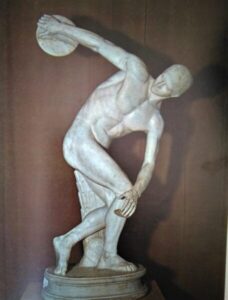 Ο μαρμάρινος Δισκοβόλος του Μύρωνα είναι ένα από τα πολλα αντίγραφα από τον χάλκινο του Μύρωνα 450-440 πΧ. Ισως είναι το τελειώτερο (Lancelloti), στο Μουσείο Θερμών στη Ρώμη.