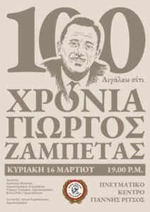 Ο Δήμος Αιγάλεω τιμά τη μνήμη και την ανεκτίμητη προσφορά του θρυλικού Γιώργου Ζαμπέτα, με αφορμή τη συμπλήρωση 100 χρόνων από τη γέννησή του.