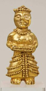 Η μικρή Μυκηναία κυρία σε χρυσό υψηλής καθαρότητας, είναι το σπάνιο μικροσκοπικό κόσμημα λαιμού από τις «Πολύχρυσες Μυκήνες» που χρονολογείται μεταξύ του (14-13 ου π.Χ.) αιώνα.