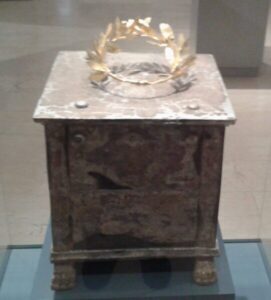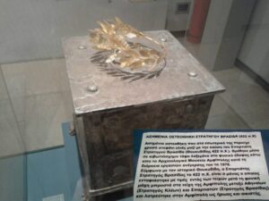 Η  ασημένια Λάρνακα  εκτίθεται στο Αρχαιολογικο  μουσειο με τα οστα του ΒΡΑΔΙΔΑ