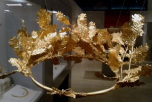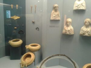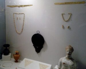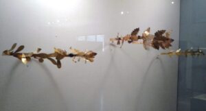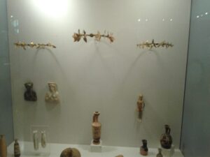 Στον προθάλαμο της έκθεσης, στο χώρο υποδοχής, εκτίθενται η ασημένια λειψανοθήκη και το χρυσό στεφάνι από φύλλα ελιάς που βρέθηκαν σε κιβωτιόσχημο τάφο, στο σημείο που είναι τώρα κτισμένο το Μουσείο.