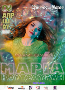 Η Μαρία Κουτσουρλή μας προσκαλεί σε ένα μοναδικό live την Τρίτη 8 Απριλίου στον Σταυρό του Νότου, παρουσιάζοντάς μας πρωτότυπες διασκευές αγαπημένων της τραγουδιών από την ελληνική δισκογραφία αλλά και από το πρώτο της προσωπικό album με τίτλο «Μια άλλη εκδοχή».