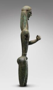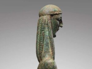 Το αριστουργηματικό ορειχάλκινο μασίφ αγαλμάτιο από το Μουσείο Τέχνης στην Βοστώνη των Η.Π.Α., είναι ένα θαύμα τεχνικής και συναισθημάτων σε παγκόσμια κλίμακα, της μεταβατικής περιόδου από την Δαιδαλική τέχνη προς την Ανατολίζουσα των αρχών του (7 ου π.Χ. αιώνα).