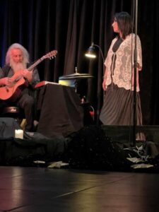 Μαρινα Βολουδακη – Συνεχίζουμε τις παραστάσεις μελοποιημένης ποίησης μαζί με τον Σπυρίδωνα ( Σπύρο Λευκοφρύδη) σε διάφορους χώρους που μας εμπνέουν.