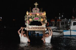 Ύδρα: Ο επιτάφιος του ναού του Αγίου Ιωάννη κατεβαίνει στην παραλία και βυθίζεται στη θάλασσα, τελώντας λιτανεία μέσα στο νερό, συμβολίζοντας την κάθαρση και ζητώντας θεία ευλογία για τους ναυτικούς.