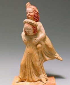 Το Ελληνιστικό πήλινο σύμπλεγμα του ειδωλίου με τα δύο τρυφερά κοριτσάκια σε στάση εφεδρισμού, είναι Κορινθιακό έργο του τέλους του (4 ου – με αρχάς 3 ου π.Χ.), και έχει ύψος (13,8 εκ.).