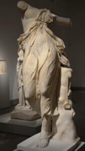 Το μαρμάρινο άγαλμα της Πραξίλλας από την Σικυώνα της Πελοποννήσου, αποκαλύφθηκε στην έπαυλη του Αδριανού στο Τίβολι, και εκτίθεται στο Εθνικό Ρωμαϊκό Μουσείο στην Ρώμη (φωτό 1.).