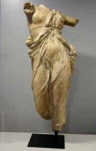 Το άγαλμά της στην Ρώμη είναι κάπως ελλιπές (ακέφαλο, χωρίς πόδια), ενώ το άλλο από το Βερολίνο είναι πιό πλήρες (έχει το ένα πόδι της), πλην όμως και τα δύο αποπνέουν τον θαυμασμό του Λύσιππου για την προσωπικότητά της , που απέδωσε ρεαλιστικά με την πολυαξονική (τρισδιάστατη) κίνηση της στον χώρο, και με δυναμισμό και λυρισμό τις πτυχώσεις του ενδύματός της που πάλλονται!