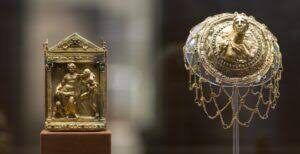 Μεταξύ τους, και ένα μεγάλο μέρος των περίτεχνων κοσμημάτων του «Θησαυρού του Καρπενησίου», που βρίσκεται μοιρασμένος ανάμεσα στο Εθνικό Αρχαιολογικό Μουσείο της Αθήνας και το Μουσείο Μπενάκη. Παρουσιάζονται πάνω από 400 αντικείμενα, κυρίως κοσμήματα αλλά και αγγεία και ειδώλια.