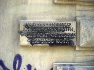 Το 1942 ο Κάρολος Κουν, που νοίκιαζε στην περίοδο της Κατοχής ένα από τα δωμάτια, έβαλε εκεί το θεμέλιο λίθο του Θεάτρου Τέχνης.