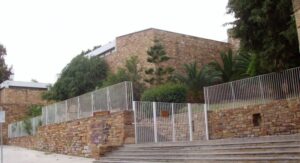 Η είσοδος στον προθάλαμο γίνεται μέσω διαδοχικών βαθμίδων, οι κλειστοί χώροι αναπτύσσονται γύρω από μια κεντρική αυλή, ενώ οι τοιχοποιίες από εγχώριο λίθο (θυμιανούσικη πέτρα) που ντύνουν το κτήριο εξωτερικά έρχονται σε αντίθεση με στοιχεία από γυμνό μπετόν και γυαλί .