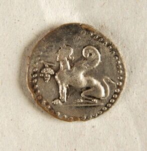 Η παρουσία της στον εμπροσθότυπο των νομισμάτων (εικ. 22) με το απλωμένο πόδι της επάνω στο χιακό οξυπύθμενο αμφορέα ή στην πλώρη πλοίου ή κρατώντας τσαμπί σταφύλι, δηλώνει ιερή προστασία και συμμετοχή στις σημαντικές χιακές δραστηριότητες .