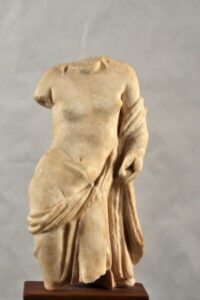 Διαδεδομένη λατρεία της Αφροδίτης, κατά τους ελληνιστικούς και ρωμαϊκούς χρόνους, αποδεικνύουν επίσης έργα γλυπτικής και κοροπλαστικής που έχουν βρεθεί στο νησί (εικ. 23). Το φίδι που συχνά συναντάμε ως κόσμημα της θεάς, γνωστό χθόνιο σύμβολο, τονίζει τη σχέση της με τη γονιμότητα της γης.