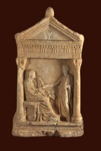 Ο άνθρωπος είναι, ήταν και θα είναι μια φιγούρα τραγική. Γεννιέται, ζει, δημιουργεί, ερωτεύεται, αγωνίζεται, φοβάται, ελπίζει, γνωρίζοντας ότι η μοίρα του είναι ο θάνατος. Στα πρόσωπα και τη στάση των νεκρών στις επιτύμβιες στήλες που αποχαιρετούν αγαπημένα τους πρόσωπα καθρεφτίζεται η θλίψη της αναχώρησης για το τελευταίο ταξίδι τους, ενώ η χειραψία μαρτυρεί την αδιάσπαστη ενότητα των δύο κόσμων, προσδίδοντας μια φιλοσοφική οπτική στα έργα αυτά .