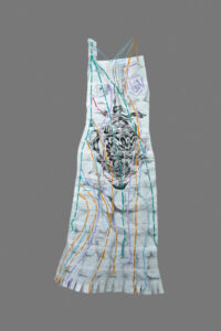 Είναι μια σειρά έργων με αφετηρία τις μεγάλες καραντίνες του covid σε ό, τι αφορά τα υλικά, Δηλ. μάζεψα τις βεβαιώσεις εξόδων στις μεγάλες καραντίνες, όπως και τα ξερά φύλλα της μανόλιας, χρησιμοποιημένες μάσκες, ( γιατί μου είχαν τελειώσει τα υλικά), και έφτιαξα με αυτά εικαστικά ενδύματα, υπονοώντας τη γυναίκα.