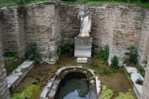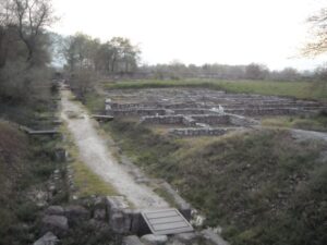 Τέτοια είναι το ιερό του Ολυμπίου Διός, το ιερό της Δήμητρας, το ιερό της Ίσιδας, η Έπαυλη του Διονυσίου και άλλα. ήταν χτισμένο σε στρατηγικό σημείο στο πέρασμα Θεσσαλίας- Μακεδονίας.