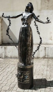 Το γλυπτό απεικονίζει τη Μαρία με 57 πεταλούδες στα χέρια, συμβολίζοντας τα θύματα της τραγωδίας, ενώ το στόμα της…