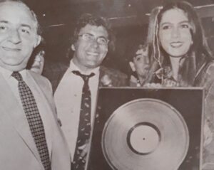 Αυτη την φωτογραφια ειχα στειλει μαζι με πλουσιο ρεπορταζ στην εφημεριδα που ημουν αναποκριτης στην ΘΕΣΣΑΛΟΝΙΚΗ . Οπως εχουμε πει ηταν ΜΑΡΤΙΟΣ του 83 και σε καποιο διαλλειμα του σωου του ΑΛ ΜΠΑΝΟ & της ΡΟΜΙΝΑΣ ΠΑΟΥΕΡ ο αξεχαστος ΖΑΚ ΜΕΝΑΧΕΜ -αριστερα- εκ μερους της εταιρειας που αντιπροσωπευε στην χωρα μας τους δισκους του διασημου ζευγαριου απενειμε τον ΧΡΥΣΟ ΔΙΣΚΟ αφου το FELICITA αλλα και τα περιφημα »παπακια» ειχαν μπει σε 70.000 σπιτια.. Μετα την απονομη και ενω απο τα ηχεια της DISCO ακουγοταν η επιτυχια της ΡΟΜΙΝΑΣ με τις χαρακτηριστηκες κινησεις που το συνοδευαν ο ΑΛ ΜΠΑΝΟ σε μια γωνια θα πει : »Αυτο το τραγουδι -γελαει- το γυρισε η ΡΟΜΙΝΑ για τον ΓΚΑΡΙ & την ΙΛΕΝΙΑ -σ.σ. τα παιδια τους- και ολα τα μικρα παιδια που τα υπεραγαπα .Τελικα το χορεψαν σ ολη την ΕΥΡΩΠΗ οι μαμαδες..και οι,,,μπαμπαδες τους..»