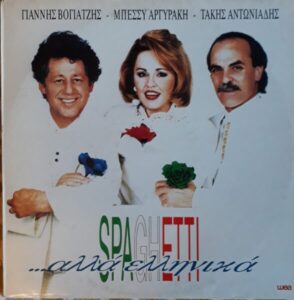 Μια απο τις Αμερικανικες εταιρειες που ειχε γραφεια και στην Ελλαδα .η περιφημη WEA αποφασισε το 1991 να πλησιασει περισσοτερο τους Φιλους του ΙΤΑΛΙΚΟΥ τραγουδιου Ηχογραφει με τρεις σπουδαιες φωνες τον ΓΙΑΝΝΗ ΒΟΓΙΑΤΖΗ .ΜΠΕΣΣΥ ΑΡΓΥΡΑΚΗ & ΤΑΚΗ ΑΝΤΩΝΙΑΔΗ μερικες γνωστες ΙΤΑΛΙΚΕΣ επιτυχιες με ΕΛΛΗΝΙΚΟΥΣ ΣΤΙΧΟΥΣ . Στο στουντιο για την δημιουργια του δισκου συνεργαζονται σπουδαιοι ΜΟΥΣΙΚΟΙ απο συγκροτηματα της δεκαετιας 60-70 .Αναμεσα τους ο κιθαριστας των CHARMS KΩΣΤΑΣ ΝΙΚΟΛΟΠΟΥΛΟΣ ο μπασιστας των LES TRICHERS ΓΙΑΝΝΗΣ ΣΑΡΟΓΛΟΥ ο ΜΠΑΜΠΗΣ ΛΑΣΚΑΡΑΚΗΣ των Θεσσαλονικεων BLOW UP και αρκετοι ακομα.. » ΣΠΑΓΓΕΤΙ αλλα Ελληνικα» ειναι ο τιτλος του αλμπουμ και ξεχωριζουμε τον ΤΑΚΗ ΑΝΤΩΝΙΑΔΗ στο »ΜΙΑ ΓΕΥΣΗ ΑΠΟ ΑΛΜΥΡΑ» τον ΓΙΑΝΝΗ ΒΟΓΙΑΤΖΗ στην διασκευη του ΠΑΡΛΑ ΜΙ και την μοναδικη ΜΠΕΣΣΥ στο φανταστικο A CHI του ΦΑΟΥΣΤΟ ΛΕΑΛΙ με τον τιτλο »ΓΙΑΤΙ»..