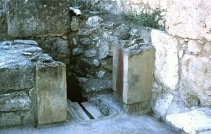 Η υγειονομική εγκατάσταση (loo) ανεσκάφη στα δώματα της βασιλίσσης, και συνίστατο σε ένα μικρό εσωτερικό δωμάτιο με λίθινο κάθισμα εργονομικού σχεδιασμού (φωτό), που διέθετε σύνδεση με το αποχετευτικό δίκτυο του παλατιού, και συνεχή ροή ύδατος από το αρχαίο υδραγωγείο της πόλης.