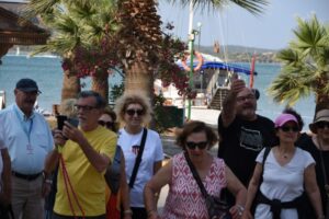 Δεν καθόμαστε. Απλά μία βόλτα περνάμε για να δουν οι συνταξιδιώτες το τουριστικό Μοσχονήσι, το σπίτι του δεσπότη και να πάρουν μία μυρωδιά από τον τόπο.