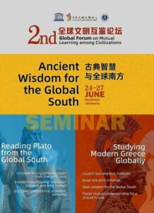 Από τις 25 μέχρι τις 27 Ιουνίου στο Κέντρο Αρχαίου Ελληνικού και Κινεζικού Πολιτισμού (ΚΕΛΚΙΠ) του Νοτιοδυτικού Πανεπιστημίου της πόλης Τσονγκτσίνγκ της ΝΔ Κίνας πραγματοποιήθηκε το 2ο Παγκόσμιο Φόρουμ για την Αμοιβαία Μάθηση μεταξύ των Πολιτισμών με στόχο την ενίσχυση και την προώθηση των παγκόσμιων πολιτιστικών ανταλλαγών και των διεθνών και περιφερειακών σπουδών σε ένα πιο συμπεριληπτικό πλαίσιο. 60 εμπειρογνώμονες και μελετητές από περισσότερες από 20 χώρες συγκεντρώθηκαν στο Νοτιοδυτικό Πανεπιστήμιο για να ανταλλάξουν απόψεις και να προσπαθήσουν από κοινού για την εξάλειψη των προκαταλήψεων και την δημιουργία μιας καλύτερης κατανόησης ανάμεσα στην Ανατολή και την Δύση.