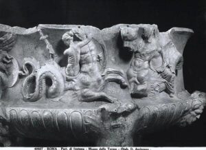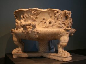 Η μαρμάρινη λεκανίδα (φωτό) από τα Λουτρά του Διοκλητιανού του (2 ου π.Χ.), κοσμεί το Εθνικό Μουσείο της Ρώμης, και είναι ένα θαυμάσιο Νεοαττικό έργο σε Ελληνιστικό στυλ με ανάγλυφες παραστάσεις Τελχίνων και άλλων θαλάσσιων πλασμάτων της Ελληνική μυθολογίας που συνάδουν με το υδάτινο περιβάλλον των λουτρών, και τους καθαρμούς από …μιάσματα….