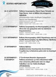 Ο Εικαστικός μας Σύλλογος, με ιδιαίτερη τιμή συμμετέχει στις Πολιτιστικές εκδηλώσεις των Τροφωνείων (με εργα 23 ζωγράφων μελών του),συνεργαζόμενοι ,με τον Δήμο Λειβαδιάς,την Εφορία Αρχαιοτήτων Βοιωτίας και το Μουσείο «Αλλοτροπία».