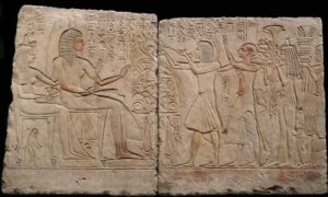 Το συγκεκριμένο ανάγλυφο βρέθηκε στην Σακκαρα και προέρχεται από την ταφική διακόσμηση του τάφου του αξιωματούχου Ρι ( Ry ή Rij) όπως αναγράφει.