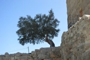 Η Άνοιξη έχει αρχίσει και εισβάλει στον χώρο και δεν υπάρχουν (ποτέ δεν υπήρξαν) υπερασπιστές να αναχαιτίσουν έναν τόσο όμορφο εισβολέα. Ανθισμένες αμυγδαλιές , χαλί από ανθισμένες ανεμώνες, μικρά πολύχρωμα και πολυάριθμα αγριολούλουδα φτιάχνουν έναν καμβά που η Άνοιξη συνεχώς συμπληρώνει. Γύρω , οι πανταχού παρούσες αιωνόβιες ελιές με τους στριμμένους κορμούς και τις ροζιασμένες ρίζες συμπληρώνουν το ατελιέ του μεγαλύτερου καλλιτέχνη που μπορεί να υπάρξει ποτέ! Της Φύσης!