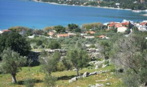 Να και στο φρύδι του βουνού φαίνεται πιάτο η θάλασσα και στο βάθος η αγαπημένη Σαλαμίνα.