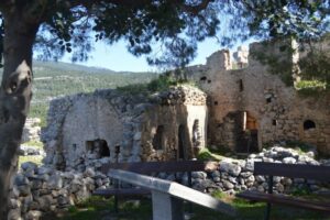 Παρ’ όλα αυτά ακούω τους πολεμιστές να φωνάζουν, τις διαταγές να εκστομίζονται βραχνά, το τρίξιμο από τους καταπέλτες που βρίσκονται στο τελευταίο πάτωμα του πύργου. Ανακατεύονται όλα αυτά με τα βογγητά των πληγωμένων. Ανακατεμένα όλα και με τις ψαλμουδιές των μοναχών μέσα κι έξω από τα κελιά τους. Μπέρδεμα καλέ μου ταξιδιώτη του Χρόνου, αλλά είπαμε… Ιστορικό παλίμψηστο είναι όλος ο χώρος.
