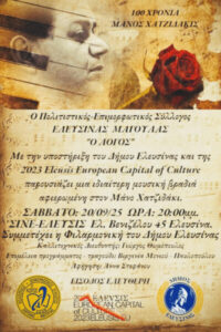 Η εκδήλωση πραγματοποιείται με την υποστήριξη του Δήμου Ελευσίνας και της 2023 Ελευσίς Πολιτιστική Πρωτεύουσα της Ευρώπης.