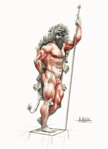 Εν τη προκειμένω, θέλησα να πειραματιστώ πάνω στο χαρτί με την εναλλαγή των μυϊκών ομάδων του ανθρωπίνου σώματος, επιδιώκοντας να αντιληφθώ την πραγματισμό της Κλασικής και Ελληνιστικής τεχνοτροπίας.
