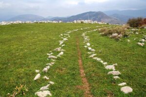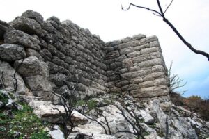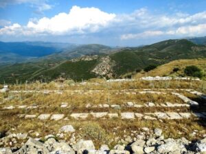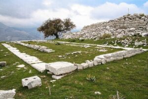 Αυτά, καθώς βρίσκομαι προ των πυλών της αρχαίας πόλης, ανάμεσα σε θεριεμένα χορτάρια, φουντωμένους θάμνους και συστάδες από πουρνάρια και βελανιδιές.