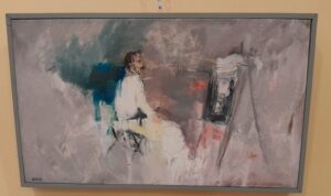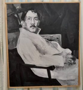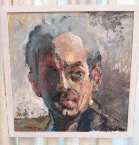 Η Χρυσάνθη Μπαϊράμη τον ζωγραφίζει σε ώριμη ηλικία με συγκρατημένη αφαίρεση και στο δεύτερο πορτρέτο της τον φιλοτεχνεί με τη χρήση ποικίλων υφασμάτων.