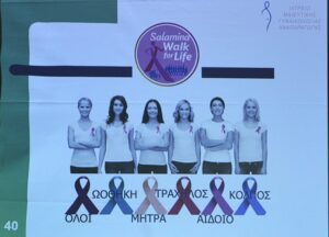 Το Σάββατο 11 Οκτωβρίου στο πνευματικό κέντρο του Αγίου Μηνά στην Κούλουρη άρχισε η φετινή (για τρίτη φορά στην Σαλαμίνα) εκδήλωση WALK FOR LIFE που αναφέρεται στην πρόληψη και ενημέρωση για τους γυναικολογικούς καρκίνους.
