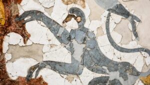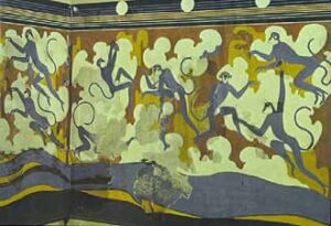 Ο χαρισματικός ανασκαφέας Αρχαιολόγος μας διηγήθηκε με τα λόγια του, την πιο γλαφυρή περιγραφή της τοιχογραφίας : « Αγέλη από τους ευκίνητους και αναιδείς αυτούς κλέπτας εισήλασεν εις αγρούς και κήπους τους οποίους ελεηλάτησαν απηνώς. Εναντίον τους εξαπελύθησαν οι κύνες, οι οποίοι τους καταδιώκουν από κοντά.