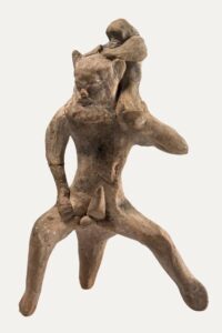 Πρόκειται για ένα χαριτωμένο και διασκεδαστικό έργο της Βοιωτικής κοροπλαστικής του (5 ου π.Χ.) των κλασικών χρόνων, που εκφράζει χιουμοριστικά το παιχνίδι που διαδραματίζεται μεταξύ της ιθυφαλλικής μυθικής μορφής του Σιληνού και του πρωτεύοντος θηλαστικού της οικογένειας των ανθρωποειδών που ζούσαν στο υποτροπικό κλίμα της αρχαίας Ελλάδας εισαγόμενο από την Ασία (Δρ. Παναγιώτης Ιωσήφ).