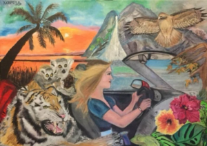 Η ζωγραφική της κινείται σε έναν προσωπικό, μεταφυσικό χώρο. Χρησιμοποιεί σύμβολα ως γλώσσα έκφρασης, ενώ αξιοποιεί στοιχεία της χρυσής τομής για την αρμονία των αναλογιών.