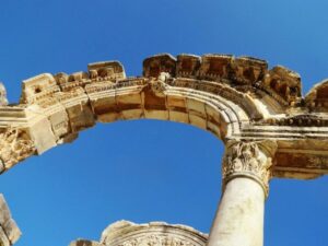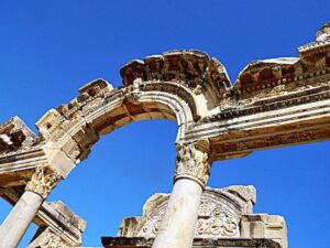 Σε αντίθεση με τις εισφορές των Ρωμαίων στην πόλη, οι Έλληνες έχουν να παρουσιάσουν θαυμάσια πνευματικά και υλικά επιτεύγματα, όπως ο ναός της Αρτέμιδος , ένας από τα 7 θαύματα της αρχαιότητος (από τον οποίο απομένει μόνο ένας στύλος πλέον…).