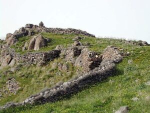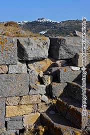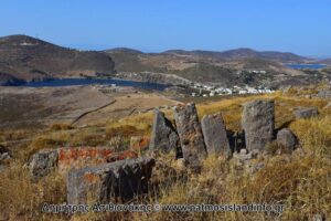 Λείψανα γεωμετρικά, αρχαϊκά, και κλασικά απαντώνται κυρίως στο Καστέλλι, την αρχαία ακρόπολη, που οχυρώθηκε με ισχυρό τείχος κατά τον (5-4ο π.Χ.). Ο Θουκιδίδης (3,33) αναφέρει ότι ο ναύαρχος του Αθηναϊκού στόλου καταδίωξε τον στόλο των Σπαρτιατών «μέχρι Πάτμου της νήσου»…..