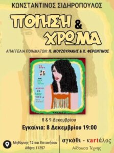 Την Δευτέρα 8 Δεκεμβρίου στις 19:00 θα παρουσιαστεί μια βραδιά ΖΩΓΡΑΦΙΚΗΣ ΚΑΙ ΠΟΙΗΣΗΣ στην αίθουσα τέχνης ΑΓΚΑΘΙ-ΚΑΡΤΑΛΟΣ.