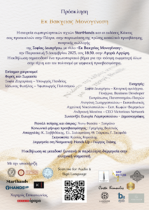 Με αφορμή την Παγκόσμια ημέρα ατόμων με αναπηρία, η εταιρεία συμπεριληπτικών τεχνών Starthands και οι εκδόσεις Κάκτος παρουσιάζουν στην Πάτρα την ποιητική συλλογή της Σοφίας Δευτερίγου με τίτλο «Εκ Βακχείας Μονογένεση» η συμπεριληπτική, την Παρασκευή 5 Δεκεμβρίου, στις 18:30, στην Αγορά Αργύρη.Την εκδήλωση θα χαιρετίσουν πολιτικά και θεσμικά πρόσωπα, εκπρόσωποι οργανισμών και ωφελούμενων μελών, μεταξύ των οποίων, η Υπουργός Παιδείας Σοφία Ζαχαράκη και ο Υφυπουργός Πολιτισμού Ιάσωνας Φωτήλας.