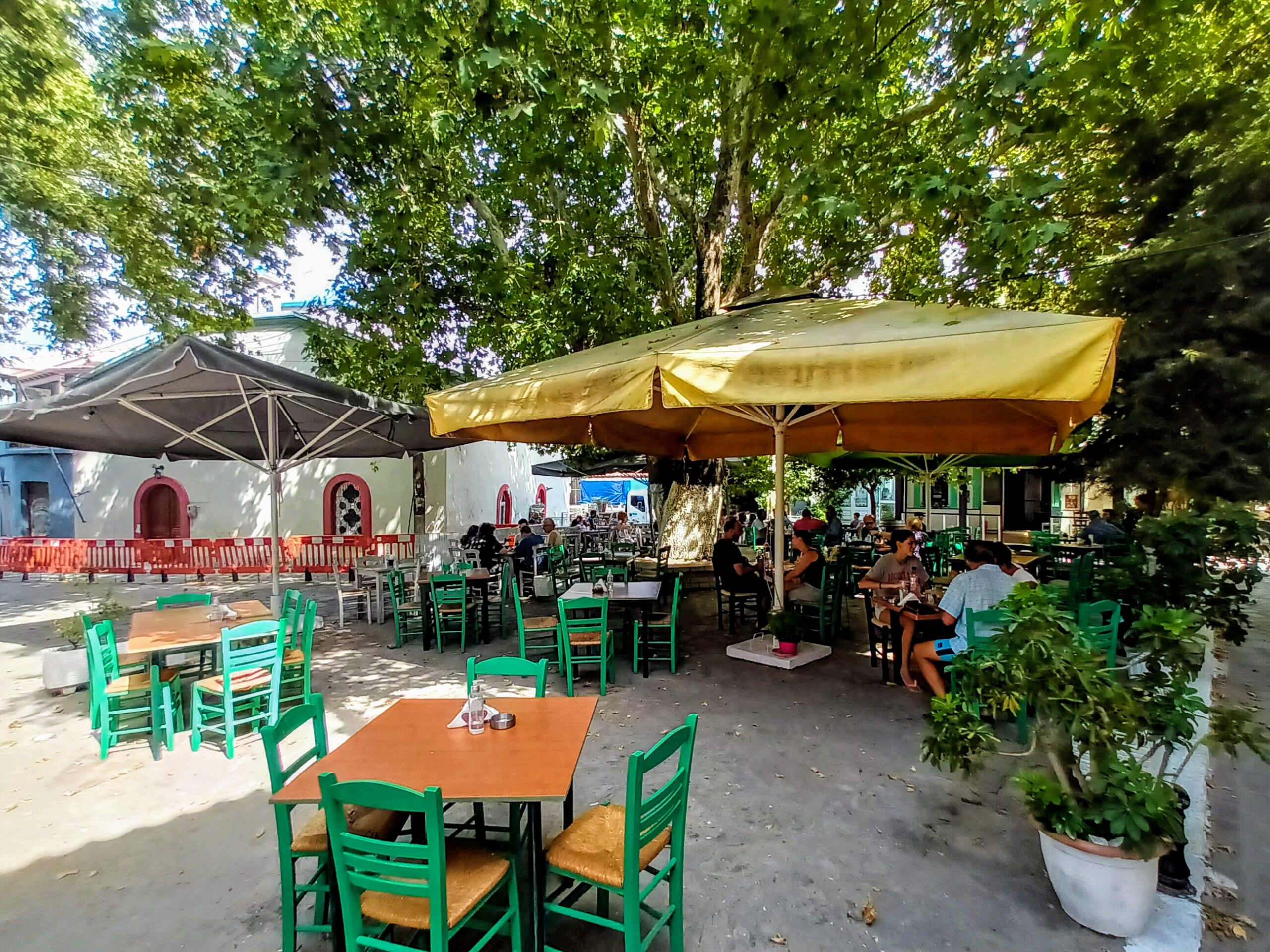 Ξεκινήσαμε τη γνωριμία μας με το χωριό από την κεντρική πλατεία. Πλακόστρωτη στον ίσκιο των ψηλών πλατανιών, και δίπλα από την εκκλησία της Παναγίας με το εντυπωσιακό μαρμάρινο τέμπλο, αποτελεί σημείο συνάντησης των ντόπιων από τα παλιά χρόνια και δημοφιλή προορισμό των ξένων επισκεπτών. Γύρω από την πλατεία παραδοσιακά καφενεία και ταβέρνες συνθέτουν το γραφικό σκηνικό, που σε μεταφέρει πίσω στο χρόνο.