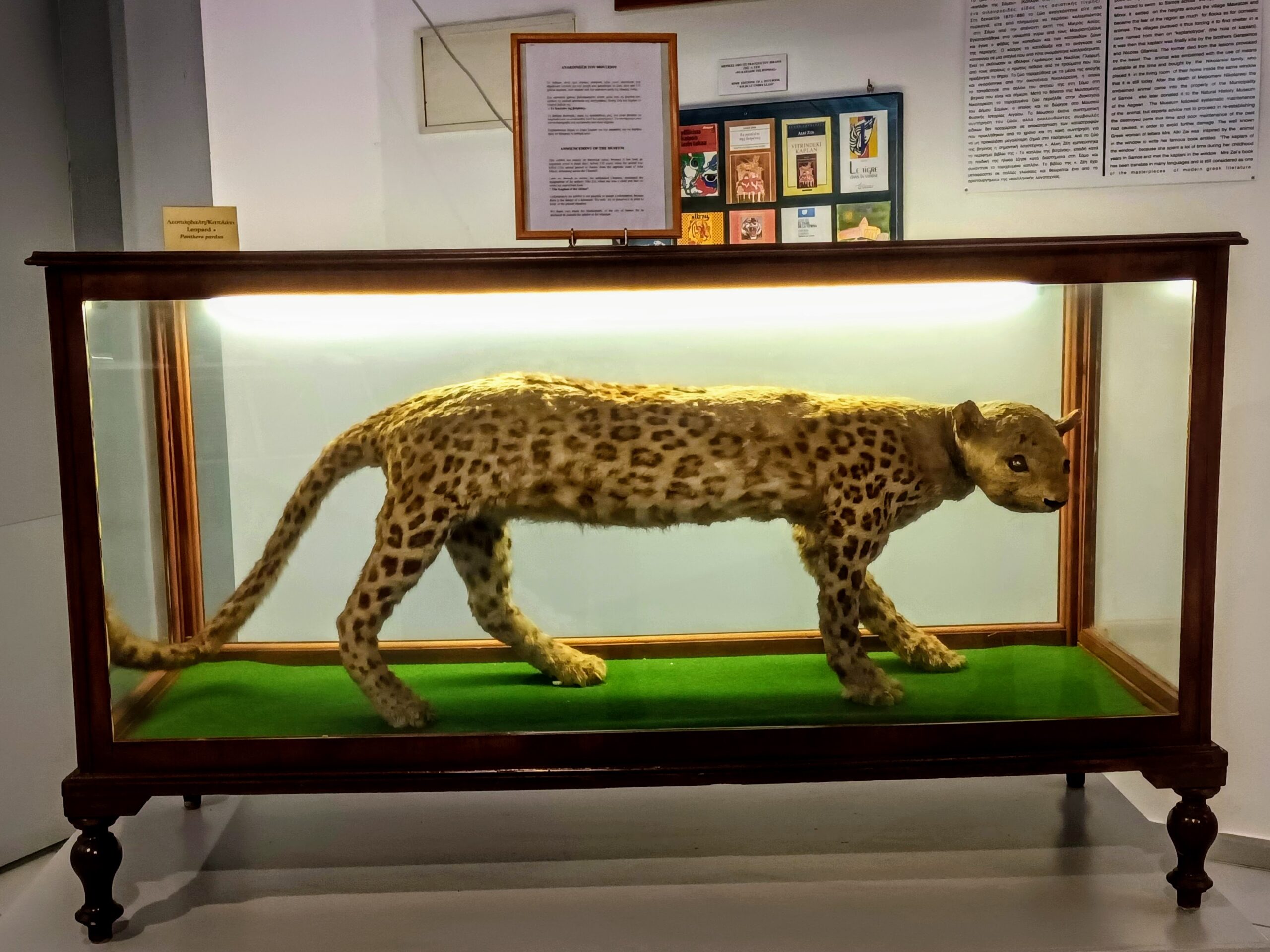 Από τα πλέον εντυπωσιακά εκθέματα είναι τα απολιθώματα ζώων που έζησαν στο νησί πριν από 8-10 εκατομμύρια χρόνια καθώς και ένα αιλουροειδές που πέρασε στη Σάμο από τα Μικρασιατικά Παράλια, το λεγόμενο «καπλάνι» ή «θηριοκάκιστη πάρδαλις». Πρόκειται για την «πηγή έμπνευσης» του γνωστού παιδικού μυθιστορήματος «Το καπλάνι της βιτρίνας» της αείμνηστης Άλκης Ζέη.