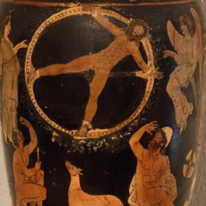 Ο μ ύ θ ο ς του Ι ξ ί ω ν α που καταδικάστηκε με τον φλεγόμενο τ ρ ο χ ό τιμωρίας να περιστρέφεται στην αιωνιότητα, υπήρξε πηγή έμπνευσης στην ζωγραφική της αρχαιότητας, για την βαριά τιμωρία που επέβαλαν οι θεοί στον βασιλιά των Λαπιθών στην Θεσσαλία σχετικά με την ασέβεια, αγνωμοσύνη, αλαζονεία και έπαρση, που επέδειξε ενώπιον θεών και ανθρώπων.