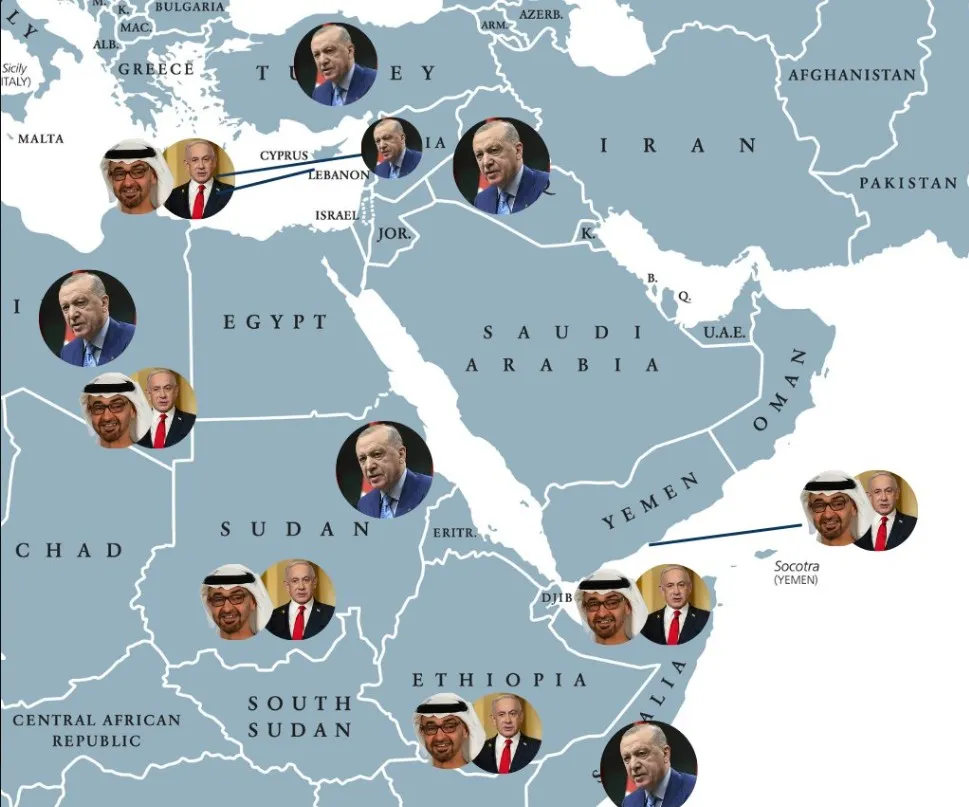Καθώς το 2025 οδεύει προς το τέλος του, η Μέση Ανατολή βιώνει μια απότομη εντατικοποίηση των γεωπολιτικών εντάσειων μεταξύ ενός αναδυόμενου μπλοκ Ισραήλ-ΗΑΕ και της Τουρκίας να εκδηλώνονται σε πολλαπλά μέτωπα. Από την Ανατολική Μεσόγειο μέχρι το Κέρας της Αφρικής, αυτές οι συγκρούσεις αναδιαμορφώνουν συμμαχίες και πολέμους δι’ αντιπροσώπων, θέτοντας δυνητικά τις βάσεις για ευρύτερη αστάθεια το 2026. Η αντιπαλότητα έχει εξαπλωθεί σε διπλωματικούς, στρατιωτικούς και οικονομικούς τομείς, με το Ισραήλ και τα ΗΑΕ να συντονίζονται ολοένα και περισσότερο για να αντιμετωπίσουν αυτό που αντιλαμβάνονται ως τουρκική επεκτατικότητα. Τούρκοι αξιωματούχοι, εν τω μεταξύ, έχουν κατηγορήσει το δίδυμο για αποσταθεροποιητικές προσπάθειες στη Συρία και πέρα από αυτήν, ενώ η Άγκυρα επιδιώκει να ενισχύσει τη δική της επιρροή μέσω στρατιωτικών αναπτύξεων και συμμαχιών.
