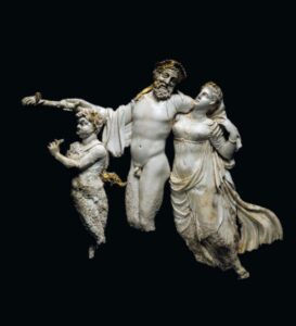 Το αριστουργηματικό ανάγλυφο της Μακεδονικής μικρογλυπτικής σε ελεφαντόδοντο και χρυσό, διακοσμούσε την καταστόλιστη νεκρική κλίνη του Αλεξάνδρου Δ´ ή Αιγέα, που ήταν γυιός του Μεγάλου Αλεξάνδρου και της πριγκίπισσας Ρωξάνης της Βακτρίας. Χρονολογείται στο (310 π.Χ.), και προέρχεται από τους βασιλικούς Τάφους στις Αιγές (Βεργίνα) της Μακεδονίας του νομού Ημαθίας.