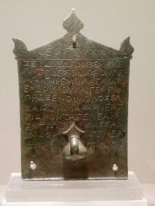 «θεός• τύχα Ζεύ, Δωδώνης μεδέων• τόδεσοι δώρον πέμπω παρ´εμού: Αγάθων Εχεφύλου και γενεά προξένοι Μολοσσών και συμμάχων εν τριάκοντα γενεαίς εκ Τρωΐας Κασσάνδρας γενεά, Ζακύνθιοι».